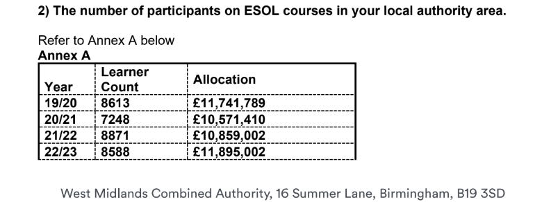 The FOI responses from most of these combined authorities indicated that there is no fixed funding designated explicitly for ESOL, and that English language skills are increasingly being subsumed into broader skill courses.