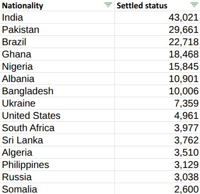 Just 1.538m (36%) of those holding settled status came from the EU-14